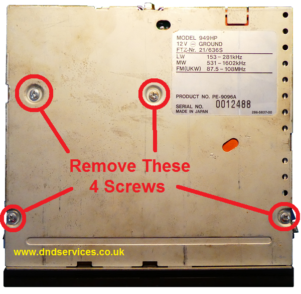 The Security Code number on these radios are determined via a series of soldered links (or pad code) on the underside of the main circuit board. The bottom cover of the radio needs to be removed to gain access to the circuit board, and you will see from the pictures that there are only a few screws that need to be undone, but before you start to panic, if you have managed to remove the radio from the vehicle, then the hard work has already been done!!