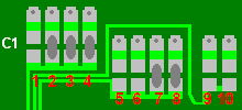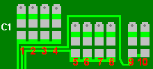 The ten pads are made up of an upper and a lower section, and will look roughly like this shown below. Some will have a blob of solder linking the upper and lower pads, and its these blobs and their locations that we need to identify as a pad code.